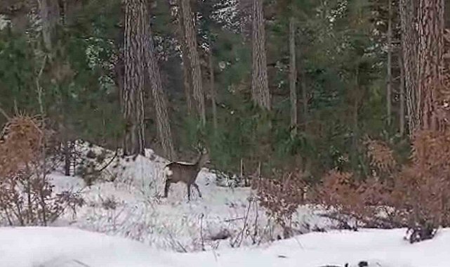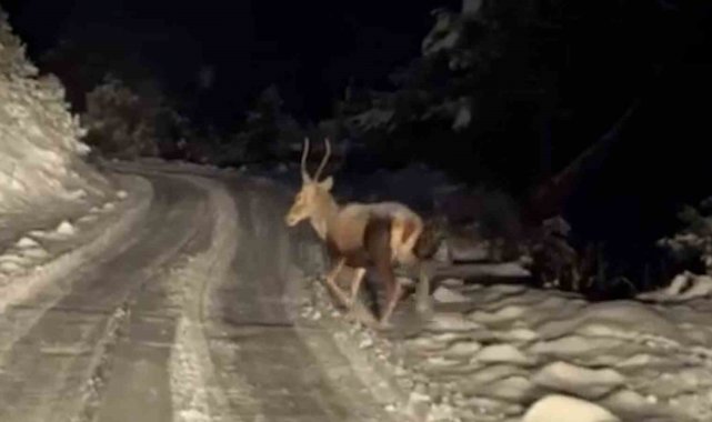 Yüzde 65'i ormanlarla kaplı olan ve yaban hayatının zenginliğiyle bilinen Bolu'da kar yağışının etkili olmasıyla Göynük ve Mudurnu ilçelerinde yaban hayvanları daha sık görülmeye başlandı. Göynük ilçesinde gece saatlerinde ormanlık alanda aracıyla ilerleyen bir vatandaş, yol kenarında bir geyikle karşılaştı. Aracın farlarını ve motor sesini fark eden geyik, kısa bir süre bekledikten sonra ürkerek geldiği ormanlık alana doğru koştu. Sabahın ilk ışıklarıyla birlikte ise Mudurnu ilçesinde yiyecek arayışına giren karaca sürüsü karayoluna yakın bir noktada görüntülendi. Seyir halindeki vatandaşlarca fark edilen karacalar, bembeyaz örtüyle kaplı arazide koşturarak gözden kayboldu.