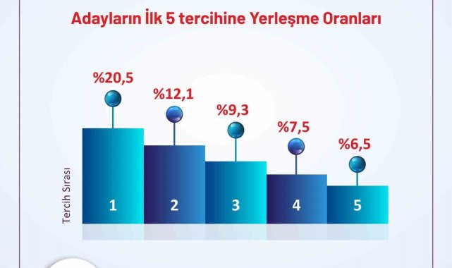 Yerleştirme sonuçlarına göre adayların yüzde 20,5'i ilk tercihine yerleşti. İkinci tercihine yerleşenlerin oranı yüzde 12,1, üçüncü tercihine yerleşenlerin oranı ise yüzde 9,3 oldu. Böylece adayların yüzde 42'si ilk üç tercihinden birini kazandı. Dördüncü tercihine yerleşenlerin oranı yüzde 7,5, beşinci tercihine yerleşenlerin oranı ise yüzde 6,5 olarak gerçekleşti. Buna göre adayların yüzde 56'sı ilk beş tercihine yerleşmiş oldu.