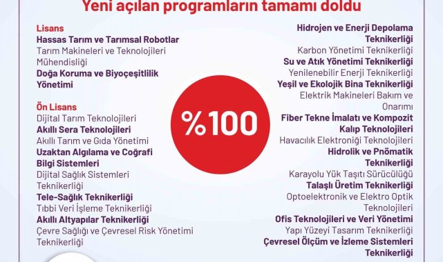 Erol Özvar, bu yıl ilk kez açılan ve hem bugünün hem de geleceğin iş gücü piyasasında kritik bir rol oynayacak 27 programın devlet üniversitelerindeki kontenjanlarının tamamının dolduğunu, tek bir boş kontenjanın bile kalmadığını dile getirdi.