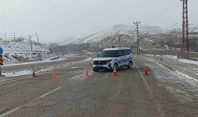 Sivas'ın Gürün ilçesinde yoğun kar yağışı nedeniyle Kayseri-Malatya kara yolu araç trafiğine kapatıldı.