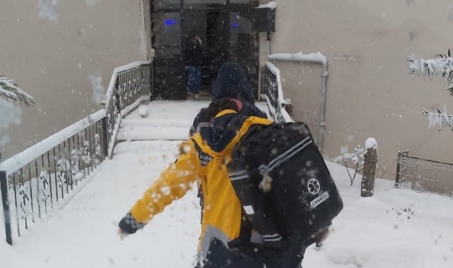 Yoğun kar sağlıkçıları durduramadı 2 hastayı hastaneye yetiştirdiler