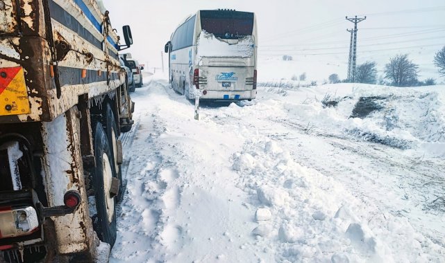 yoğun kar yağışı Alaca yolunda ulaşımda aksamalara neden oldu