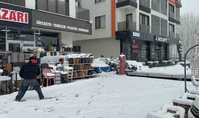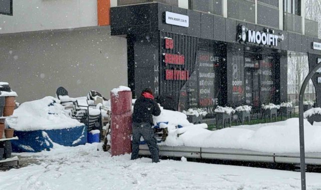 Düzce'de etkili olan kar yağışı esnafı vurdu. Sokaklar boş kalınca esnaf çareyi kar topu savaşı yapmakta buldu.