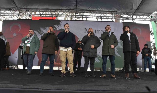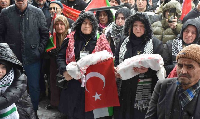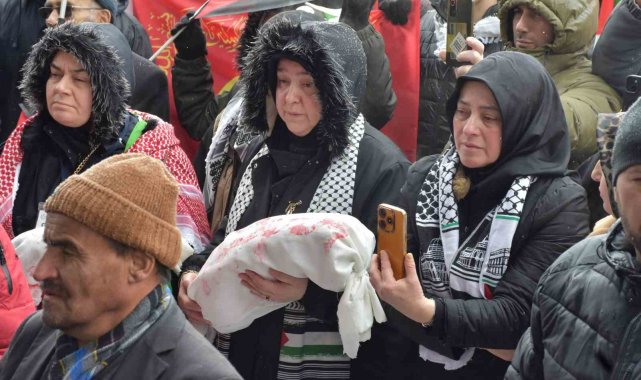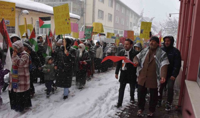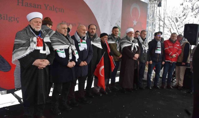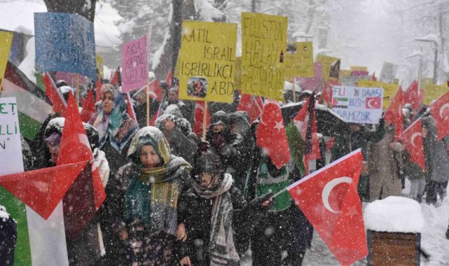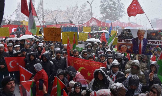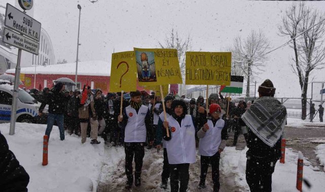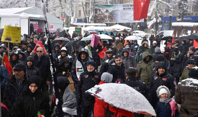 Sakarya'da 152 sivil toplum kuruluşunun katılımıyla yoğun kar yağışı altında 'Gazze Direnişine Destek Zamanı' mitingi düzenlendi.