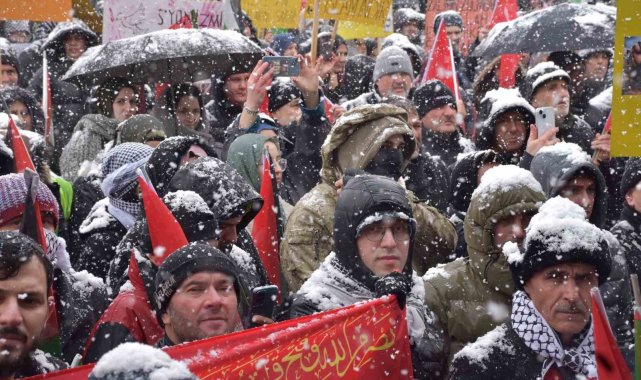 Yoğun kar yağışının altında insan seli: Gazze için tek yürek oldular
