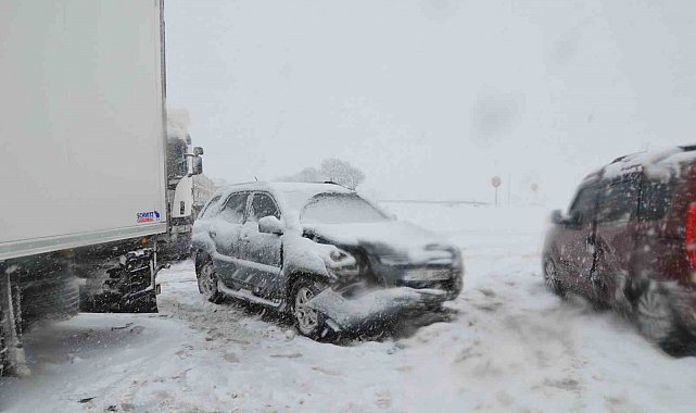 Yoğun kar zincirleme kazalara yol açtı: Toplam 21 araç birbirine girdi, 4 kişi yaralandı