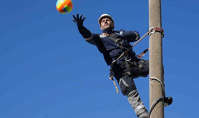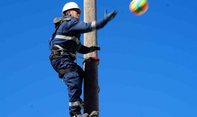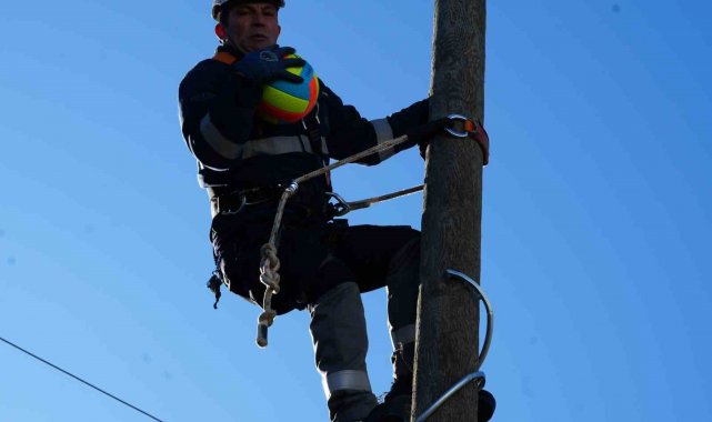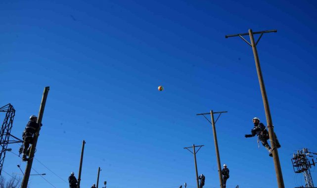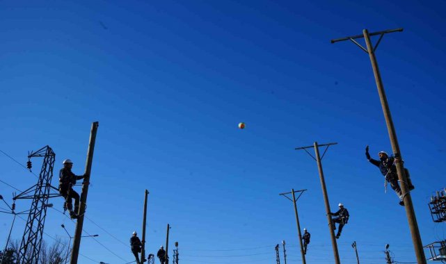 Doğu Anadolu Bölgesi'nde elektrik dağıtım hizmeti veren Aras EDAŞ, saha çalışanlarını zorlu iklim ve coğrafi şartlarına hazırlıyor. Personel sabah antrenmanlarında koşuyor, direk taşıyor ve elektrik direkleri üzerinde voleybol oynuyor.