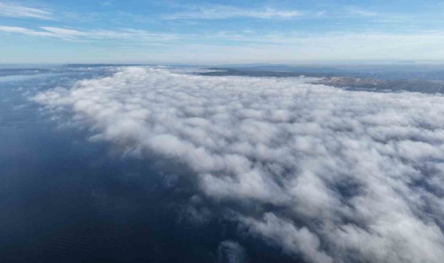 Çanakkale Boğazı'nda etkili olan yoğun sis havadan görüntülendi.