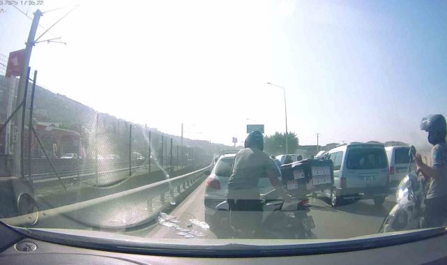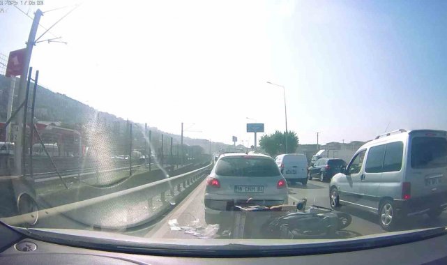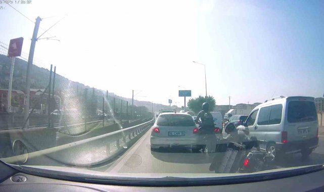 Osmangazi ilçesi İzmir Yolu Caddesi üzerinde meydana gelen olayda, yoğun trafikten kaçmak isteyen motosikletlilerin trafik kurallarını hiçe sayarak şerit değiştirdiği ve araçların arasından ilerledikleri görüldü. İki motosikletlinin birbirine çarpmasıyla yere savruldukları anlar araç içi kamerasına yansırken, savrulan sürücülerin yardımına çevredekiler koştu. Şans eseri ufak sıyrıklarla atlatılan kazayla ilgili tahkikat başlatıldı.