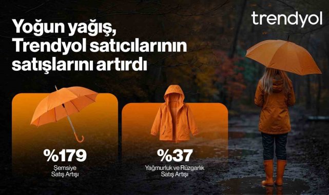 Trendyol verilerine göre; şemsiye, bot, yağmurluk ve rüzgarlık gibi hava koşullarıyla doğrudan ilişkili kategorilerde faaliyet gösteren satıcıların satış performanslarında, geçtiğimiz hafta sonundan itibaren ortalama yüzde 26 artış kaydedildi.