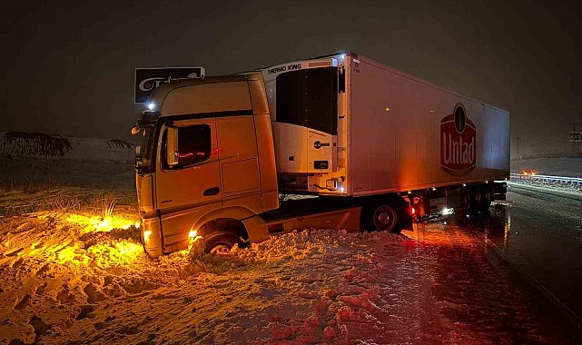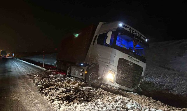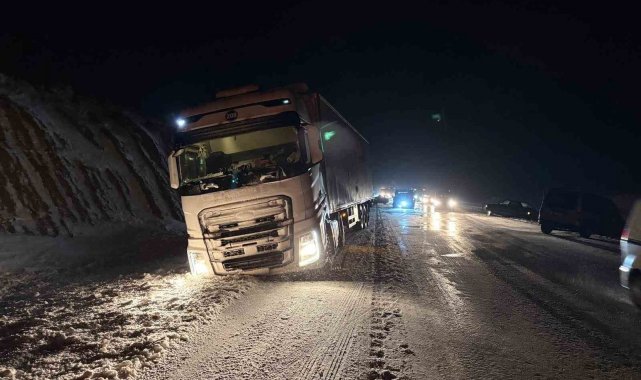 Yol buzlandı, tırlar makasladı