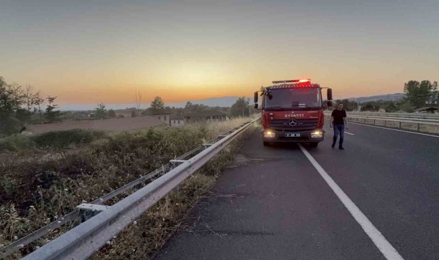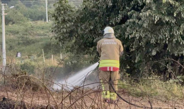 Düzce'de yol kenarına atılan izmarit sebebiyle otlar tutuştu. İtfaiye ekiplerinin çalışması ile yangın büyümeden söndürüldü.