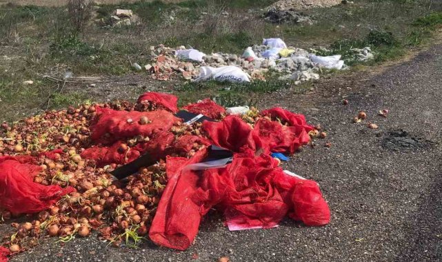 Tekirdağ Muratlı-Süleymanpaşa yolu kenarına dökülen çuvallar dolusu soğan, vatandaşların tepkisine sebep oldu.