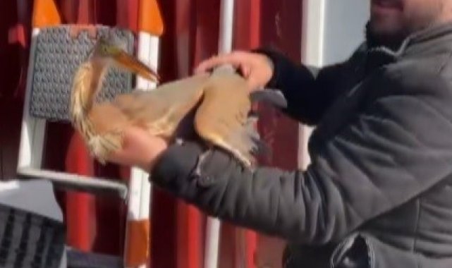 Yol kenarında bulduğu yaralı ergüvani balıkçıl kuşunu yetkililere teslim etti