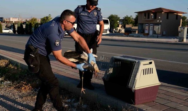 Karaman'da bir vatandaş tarafından yol kenarında yaralı ve bitkin halde bulunan leylek koruma altına alındı.