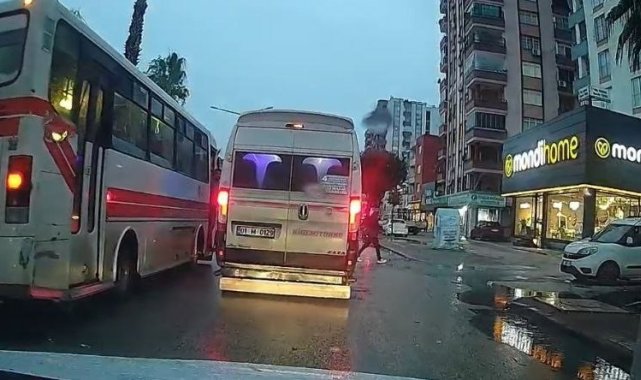 Olay, merkez Yüreğir ilçesine bağlı PTT Evleri Mahallesi Kozan Caddesinde meydana geldi. İki sürücü caddede ilerlerken yol verme meselesi yüzündün sürtüştü. Bu sırada özel halk otobüsü sürücüsü, minibüs sürücüsünü takip etmeye başladı. Bir süre sonrada özel halk otobüsü sürücüsü, minibüse arkadan çarparak maddi hasarlı kazaya neden oldu. Bu anlar da caddede ilerleyen başka bir aracın kamerasına yansıdı. İl Emniyet Müdürlüğü Trafik Denetleme Şubesi ekipleri bu görüntüler üzerine harekete geçti. Polis görüntülerde yer alan 01 J 0370 plakalı aracın sürücüsü B.Y. ve 01 M 0129 plakalı aracın sürücüsü H.C.A.'ye ulaştı. Polis B.Y. hakkında Karayolları Trafik Kanunu ve Karayolları Taşıma Kanunu kapsamında saygısızca araç kullanmak, araçtaki gereçleri usulüne uygun kullanmamak, sürücünün fizyolojik veya psikolojik durumunun sürücülüğe elverişli olmadığı kanaatine varılması, Psikoteknik belgesi olmadan ticari araç kullanmak suçlarından çok sayıda ihlal belirleyip 10 bin 486 TL idari para cezası uyguladı. Ayrıca sürücünün davranışlarının trafik güvenliğini ciddi şekilde tehlikeye düşürmesi nedeniyle ehliyetine el konuldu.