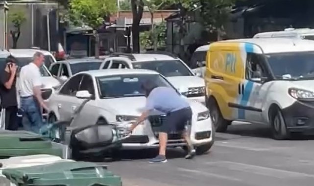 Olay, Yıldırım ilçesi Eğitim Caddesi üzerinde meydana geldi. İddiaya göre, trafikte yol verme tartışması nedeniyle bir motosiklet ve otomobil sürücüsü arasında tartışma yaşandı. Tartışmanın hararetlenmesi üzerine motosikletinden inen sürücü, aracın önünü kesip sileceği kırdı. Gaza basan sürücünün uyarısına rağmen bir süre otomobilin önünde direnen şahıs, bu kez de cama yumruk attı. O anlar kameraya yansırken, olayla ilgili tahkikat başlatıldı.