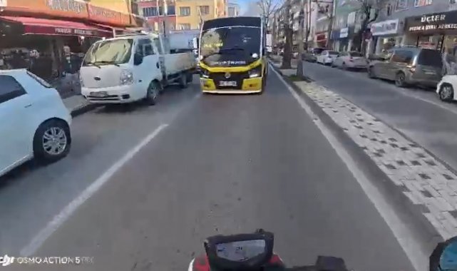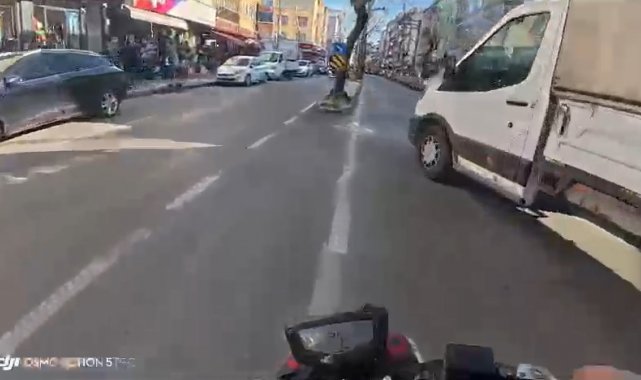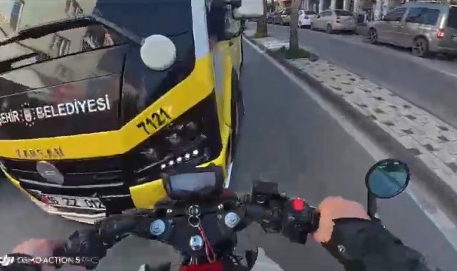 Bursa'nın Yıldırım ilçesi Yeşilyayla Mahallesi'nde motosikletiyle ilerleyen Mert A., cadde üzerinde yola aniden çıkan kamyonete çarpmamak için manevra yapıp ters yöne girdi. Fren yapmasına rağmen duramayan sürücü, karşı taraftan gelen yolcu dolu otobüsle kafa kafaya çarpıştı. O anlar kameraya yansırken, facianın eşiğinden dönen sürücü, kazayı şans eseri yara almadan atlattı. İhbar üzerine gelen trafik ekiplerince değerlendirilen kazada motosikletli sürücüye hızlı araç sürmekten yüzde 25, tali yoldan çıkan kamyonet sürücüsüne yüzde 75 kusur verildi.