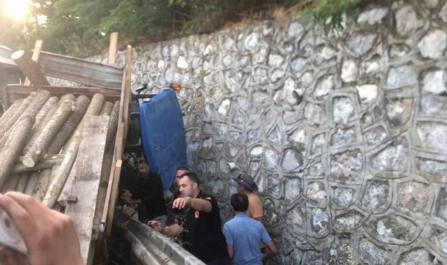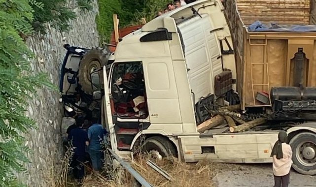 Samsun'un Bafra ilçesinde tomruk yüklü bir traktörden aniden yola düşen tomruklar kazaya yol açtı. Traktöre arkadan çarpan kamyonun sürüklediği traktör istinat duvarına sıkışırken, sürücü ağır yaralandı.
