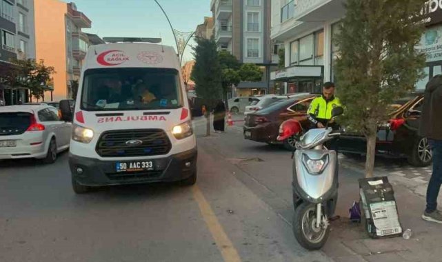 Nevşehir'de yola kontrolsüz çıkan otomobil ile aynı istikamette seyreden motosiklet çarpıştı. Kazada 1 kişi yaralandı. Kaza anı güvenlik kameralarına yansıdı.