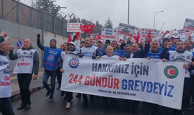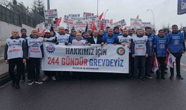 Özçelik-İş Sendikası öncülüğünde 244 gün önce greve çıkan işçiler Ankara'da Çalışma ve Sosyal Güvenlik Bakanlığı'na yürüyüp talep ve beklentilerinin karşılanması yönünde çağrı yaptı.