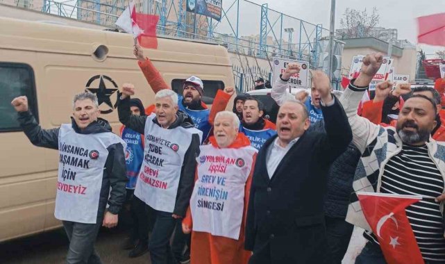 "Direne direne kazanacağız", "İşçi sendika omuz omuza" "Yolbulan işçisi direnişin simgesi' sloganları atan işçiler, yağan yağmura aldırış etmeden, taleplerini dile getirdi.