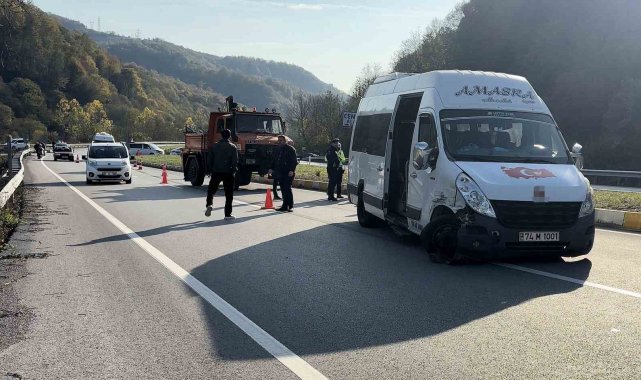 Bartın'ın Amasra ilçesinde yolcu minibüsü ve otomobilin çarptığı kazada 2 kişi yaralandı.