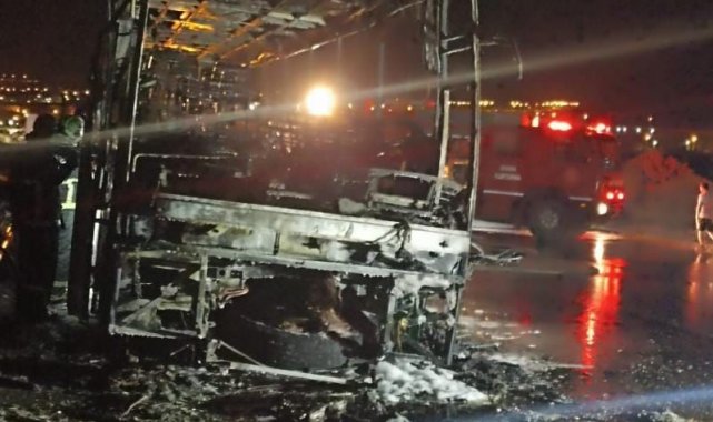 Tarsus-Adana-Gaziantep (TAG) otoyolu Nurdağı kesiminde seyir halindeyken yanmaya başlayan yolcu otobüsü kullanılamaz hale geldi. Yangını erken fark ederek 31 yolcuyu hemen tahliye eden otobüs şoförü ise faciayı önledi.