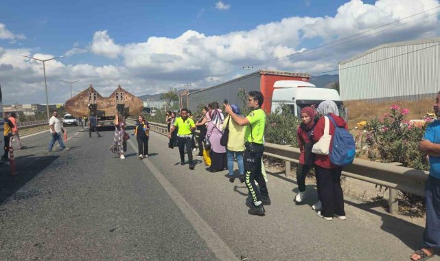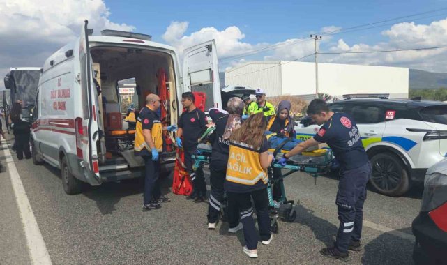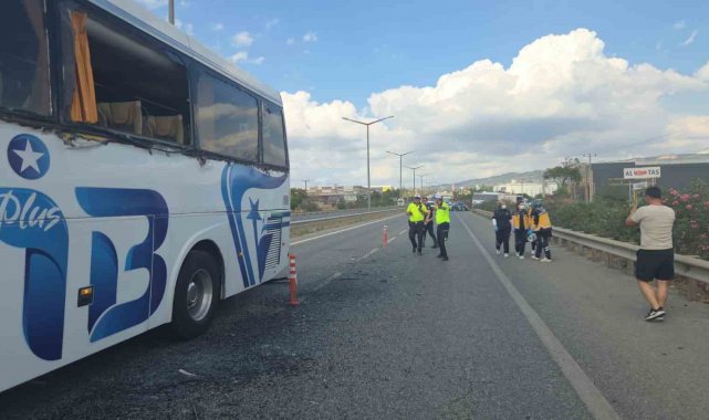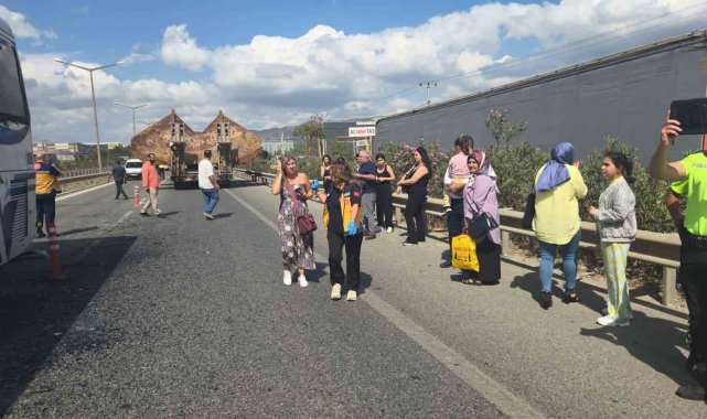 Bursa'nın Orhangazi İlçesinde meydana gelen trafik kazasında yolcu otobüsü, yol çalışması nedeniyle tek şeride düşen yolda yanından geçen ve gemi çapası taşıyan tıra çarptı. Kazada otobüste yolcu olan 3 kişi yaralanırken, diğer yolcular büyük panik yaşadı.