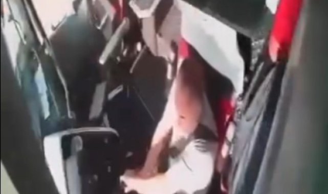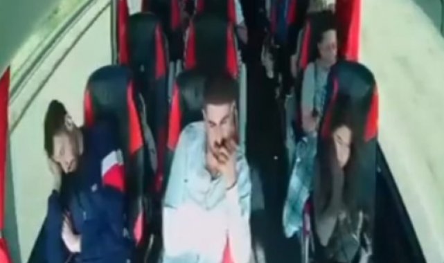 Kaza anı otobüsün araç içi güvenlik kamerasına saniye saniye yansıdı.