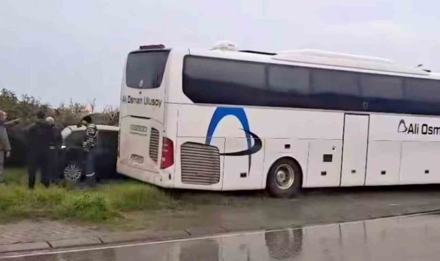 Yolcu otobüsü otomobile çarptı: 1 yaralı