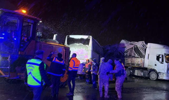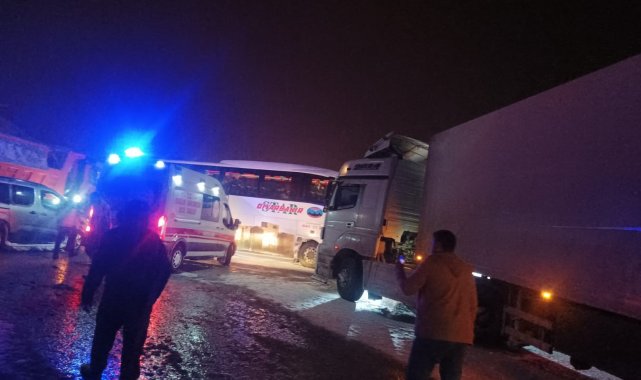 Bingöl'de kar ve buzlanmadan dolayı kayan tır, yolu kapattı. Bu sırada duramayan yolcu otobüsü tıra çaptı. Kazada 3 kişi yaralandı.