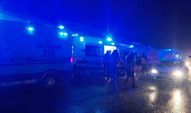 Yolcu otobüsü yolu kapatan tıra çarptı: 3 yaralı
