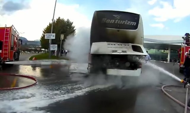 Yolcu otobüsünde çıkan yangın büyümeden söndürüldü