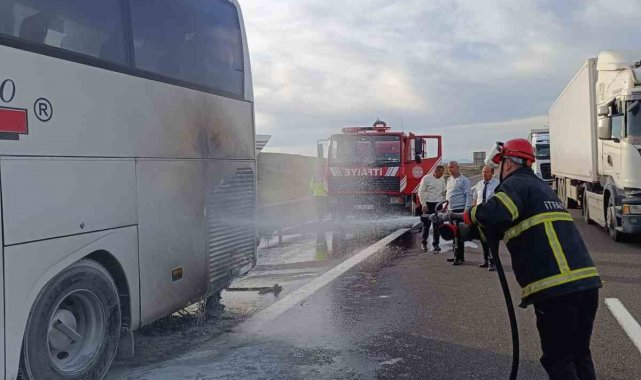 TEM Otoyolu'nun Bolu geçişinde yolcu otobüsü motor kısmından alev aldı. Yangın itfaiye ekiplerince kısa sürede söndürüldü.