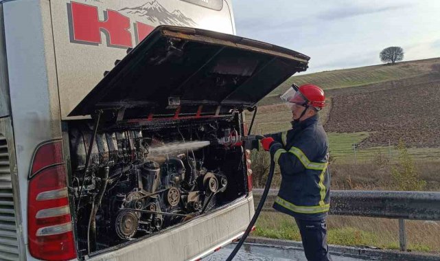 Yolcu otobüsünün motor kısmından alevler yükseldi