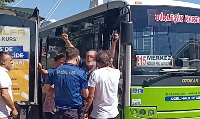 Kocaeli İzmit'te yolcusu ile tartıştığı ve yolcusunu demir sopayla kovaladığı iddia edilen halk otobüsü şoförü, polis ekipleri olay yerine gelince bıçağı boynuna dayadı. Şoför, uzun süren ikna çabalarının ardından teslim oldu.