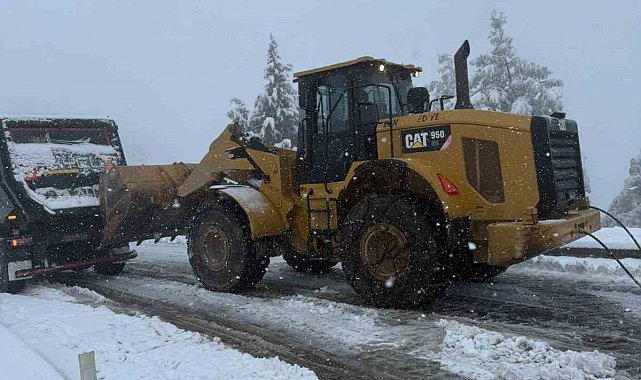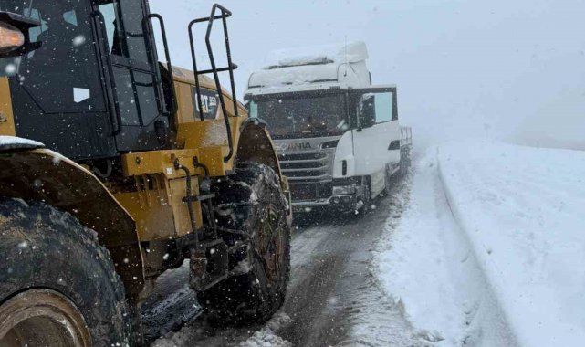 Yolda kalan araçlar iş makineleriyle kurtarılıyor