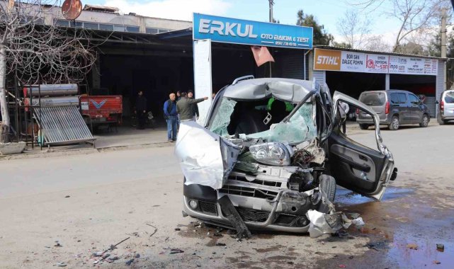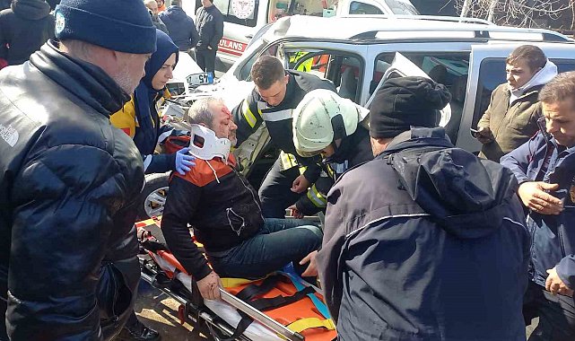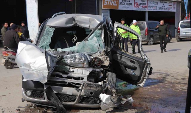 Manisa'nın Turgutlu ilçesinde direksiyon hakimiyetini kaybeden hafifi ticari araç sürücüsü, yol kenarında park halindeki kamyona çarptı. Çarpmanın etkisiyle kamyonun önünde yaya olarak bulunan bir kişi ve hafif ticari aracın sürücüsü yaralandı. Kaza anı bir iş yerinin güvenlik kamerasına yansıdı.