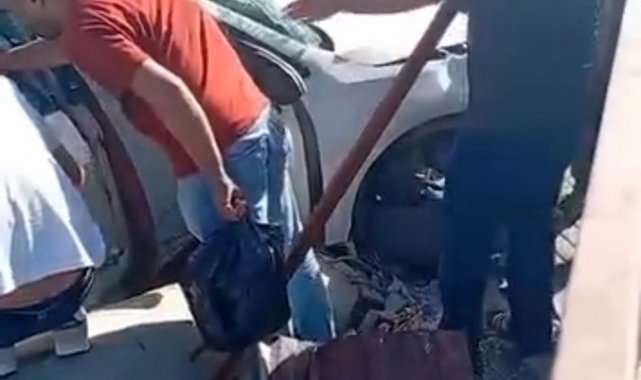 Yoldan çıkan araç bariyerlere ve direğe çarptı: 2 yaralı