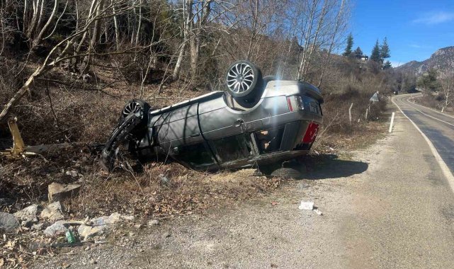 Yoldan çıkan cip ters döndü: 5 yaralı