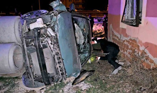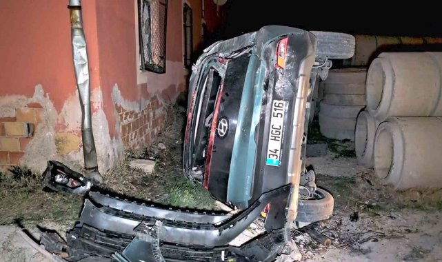 Yoldan çıkan otomobil 200 metre sürüklendi, evin duvarına çarptı: 1 yaralı