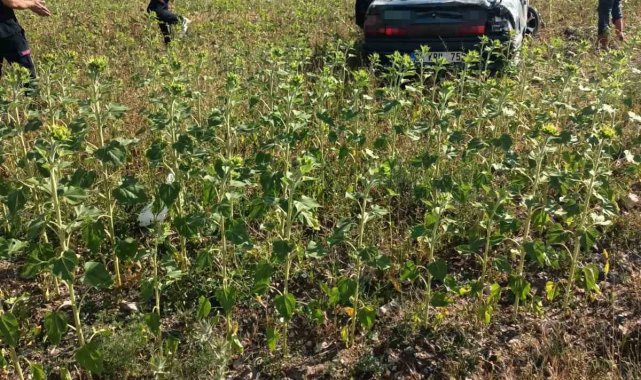 Yoldan çıkan otomobil tarlaya uçtu :1 yaralı