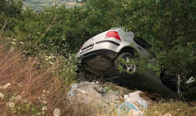 Tokat'ın Niksar ilçesinde meydana gelen trafik kazasında, kontrolden çıkan otomobil yol kenarına savrularak şarampole yuvarlandı.
