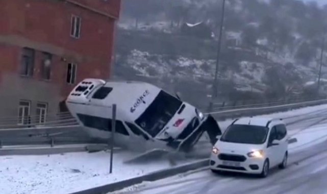 Kayseri'de etkili olan soğuk hava ve kar yağışı kazaları da beraberinde getirdi. Melikgazi ilçesi Altınoluk Mahallesi Fatih Sultan Mehmet Bulvarı üzerinde kontrolünü kaybeden minibüs devrildi, peşinden gelen otomobil ise refüje çıktı. Kazalarda 2 kişi yaralandı. O anlar ise anbean vatandaşların cep telefonu kamerasına yansıdı.