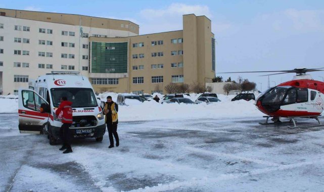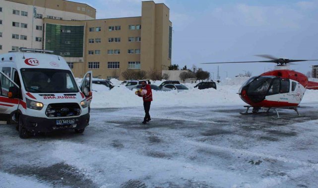 Yolu kapalı köyde rahatsızlanan anne ve bebeği ambulans helikopterle kurtarıldı