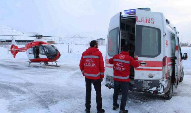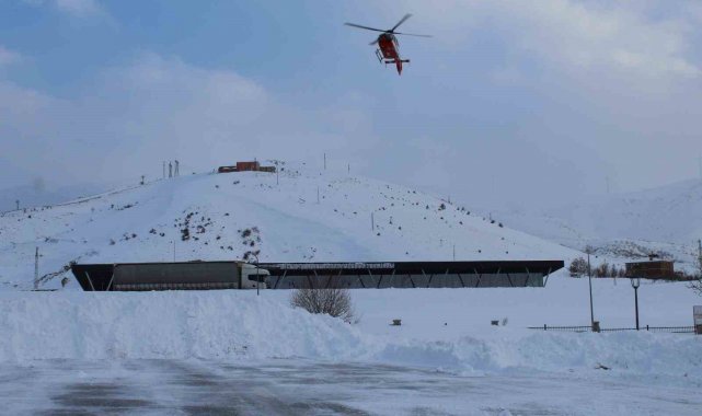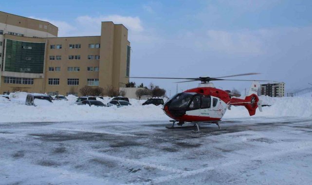 Bitlis'te yoğun kar nedeniyle yolu kapanan Akçalı köyü Tabanözü Mezrası'nda rahatsızlanan anne ve yeni doğan bebeği, helikopter ambulansla hastaneye yetiştirildi.