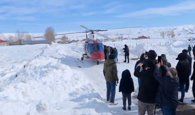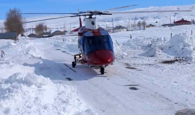 Yolu karla kapanan köydeki hastanın yardımına ambulans helikopter yetişti