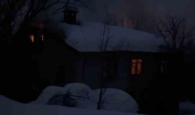 Yolu ulaşıma kapanan köydeki 2 katlı ev alevlere teslim oldu