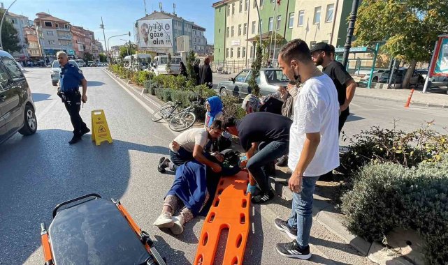 Karaman'da motosikletin çarptığı yaya kadın ile sürücü yaralandı.